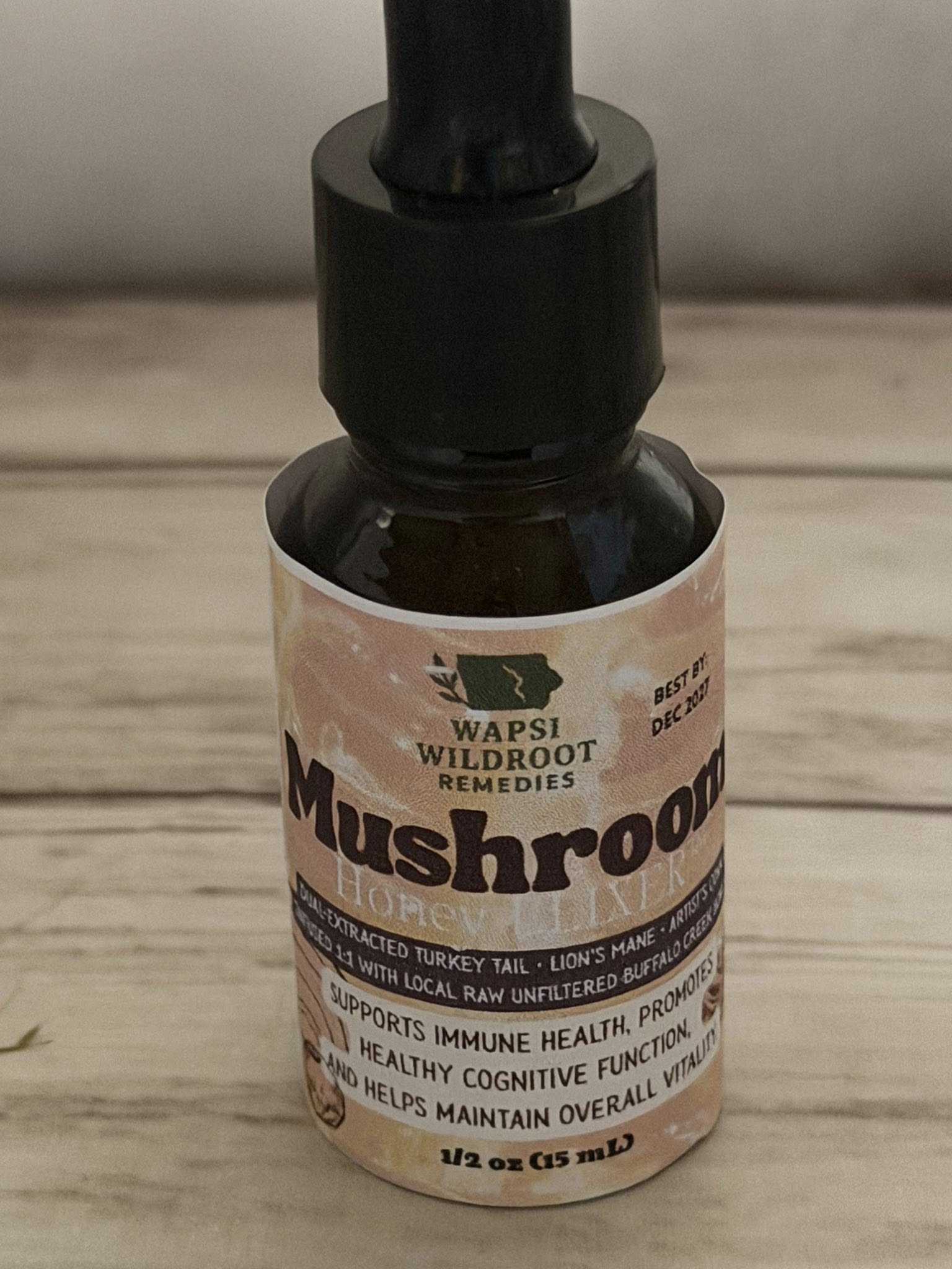 Mushroom Honey Elixir Turkey Tail • Lion’s Mane • Artist’s Conk Crafted with Buffalo Creek Raw Honey (Winthrop, IA)